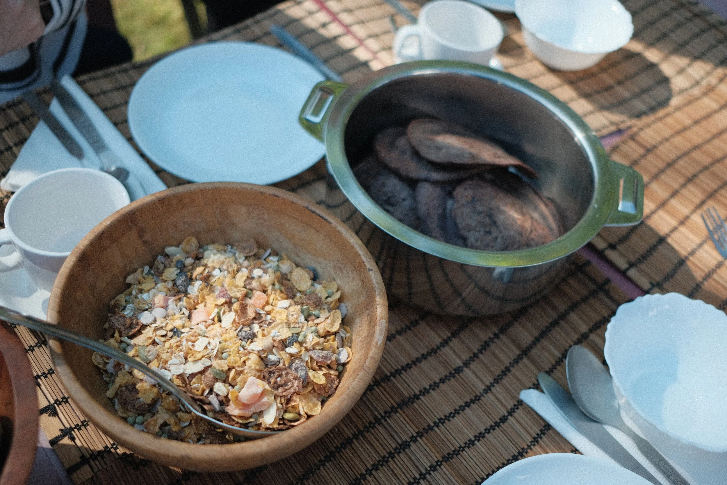 A breakfast spread will be served on the lawn, with milk that is milked daily in the morning and seasonal fresh fruits. Tea and coffee options are available too.